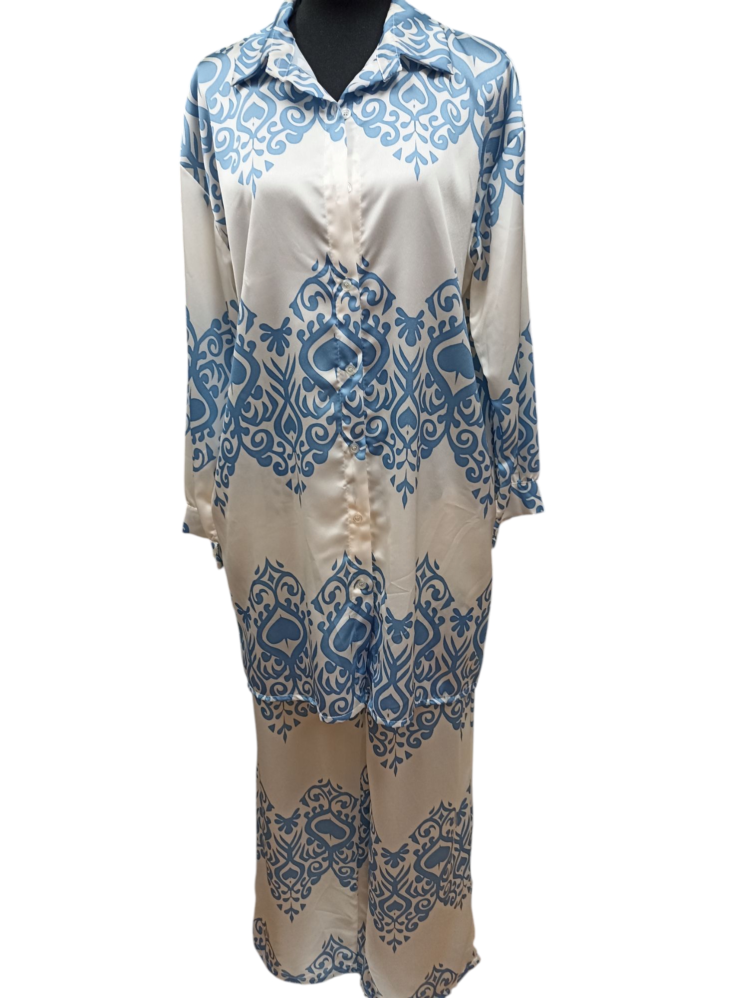 CONJUNTO DE CAMISA Y PANTALON LARGO.TALLA UNICA GRANDE.PANTALONES CON CINTURA ELASTICA Y ANCHOS,CAMISETA ANCHA.MATERIAL POLIESTER/ELASTIN