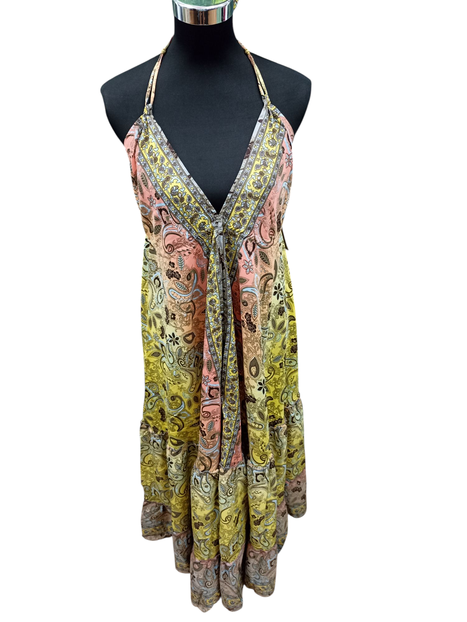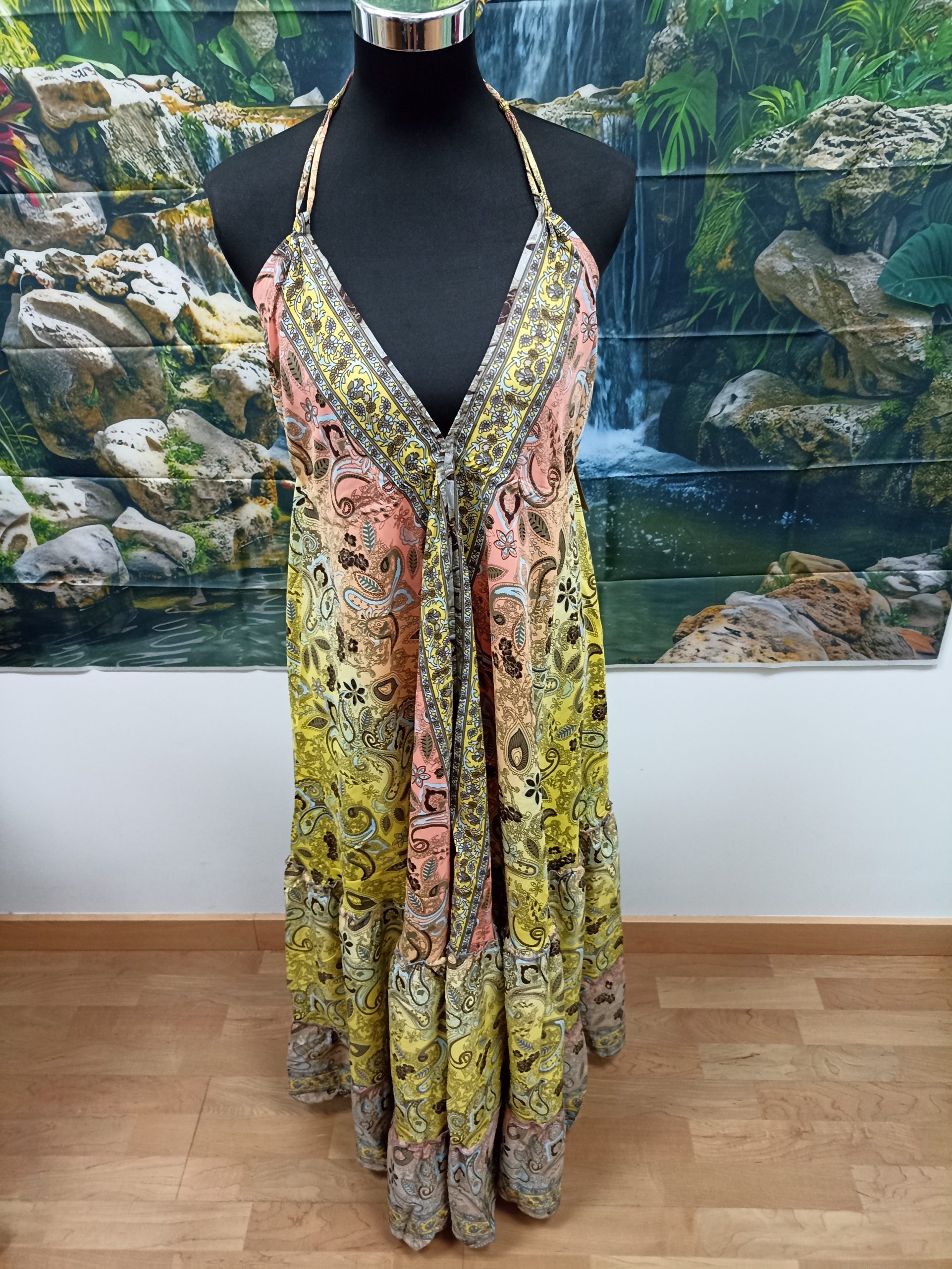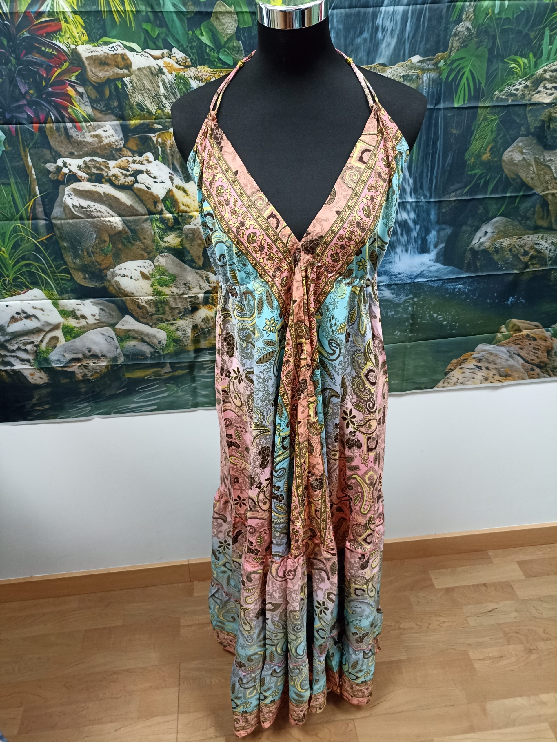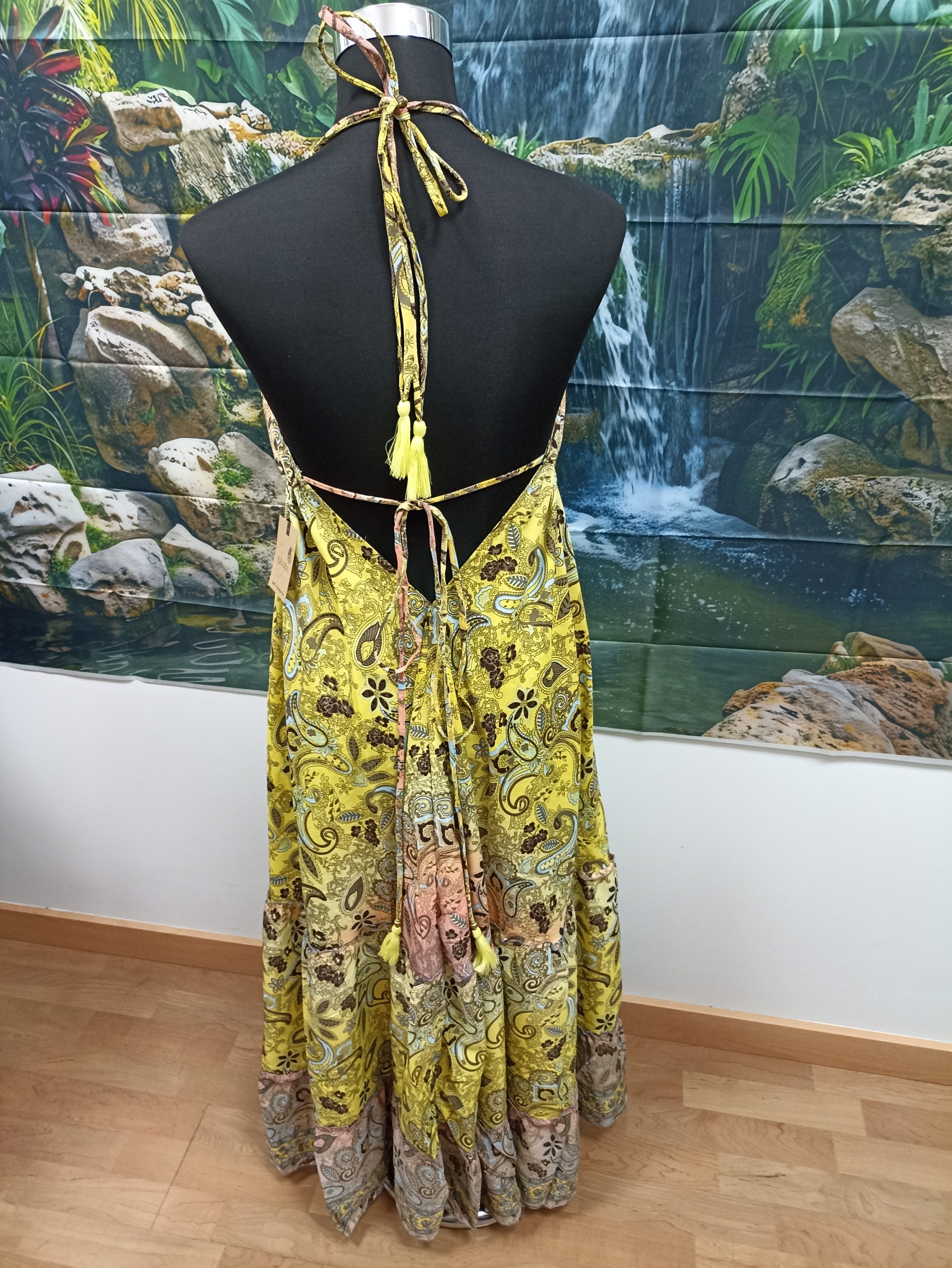VESTIDOS MODA INDIA. VESTIDOS CON ESCOTE PICO, CON ESPALDA AL AIRE CON AJUSTES DE CORDO.